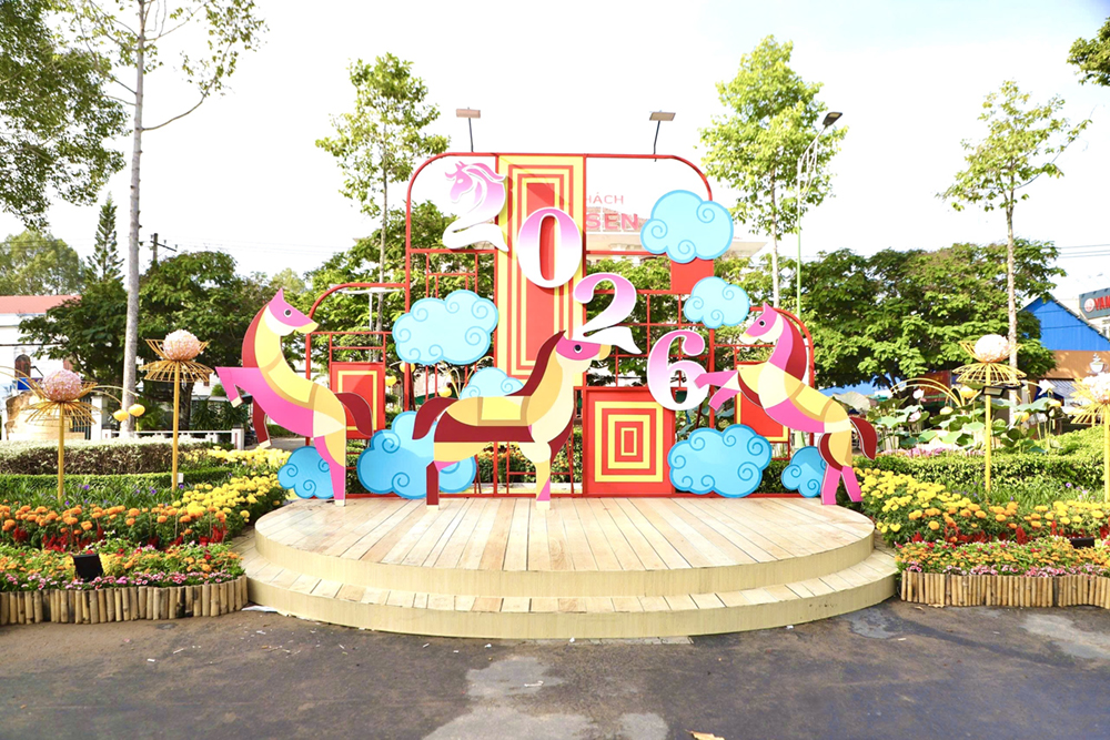 Lấy cảm hứng từ chủ đề “Kỷ nguyên xanh thịnh vượng - Sen hồng tỏa sắc hương”, Đường hoa Xuân Bính Ngọ 2026 tại phường Cao Lãnh mở ra không gian nghệ thuật rực rỡ, tái hiện hình ảnh Đồng Tháp xanh, thân thiện và giàu bản sắc. Đường hoa Xuân sẽ chính thức khai mạc vào tối nay 13/02/2026 (nhằm ngày 26 tháng Chạp năm Ất Tỵ).