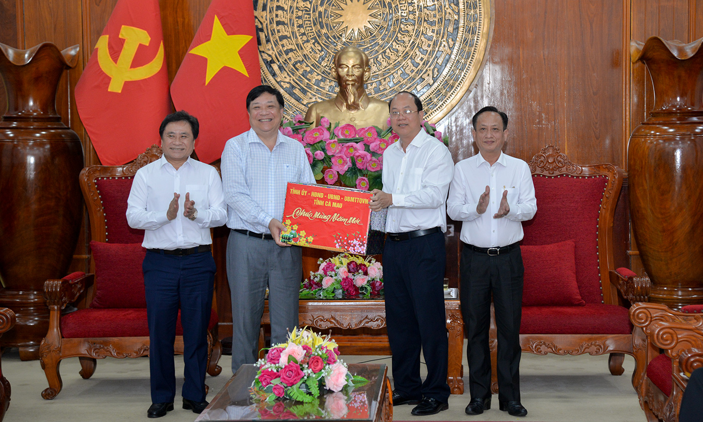 Đồng chí Phạm Thành Ngại tặng quà, chúc tết Tỉnh ủy Cà Mau.