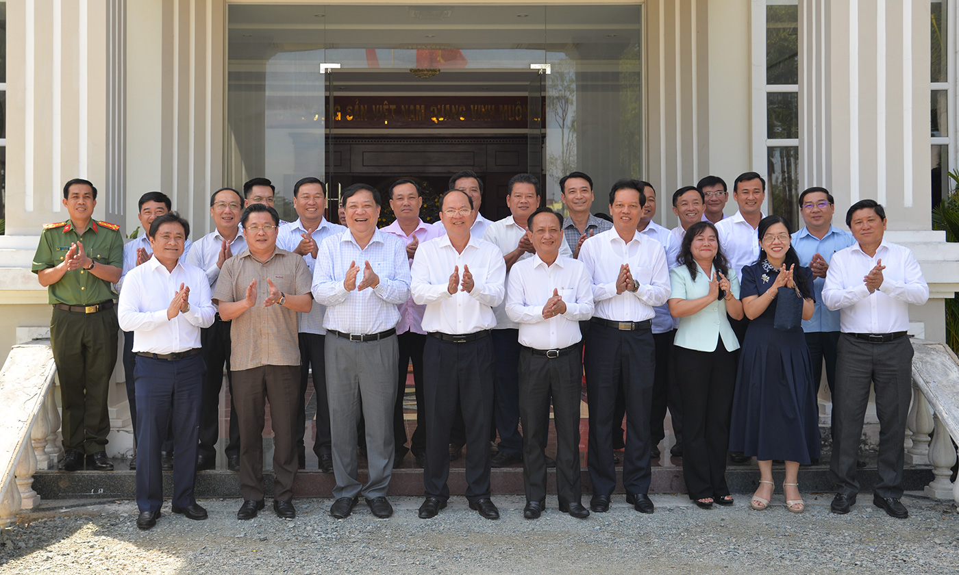 Đoàn Tỉnh ủy Đồng Tháp chụp ảnh lưu niệm cùng đại diện lãnh đạo Tỉnh ủy Cà Mau