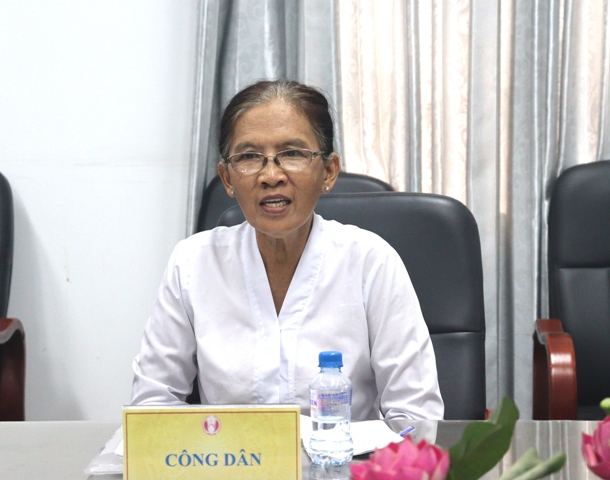 Bà Hồ Thị Kim Gương (xã Hòa An, TP Cao Lãnh) nêu yêu cầu khiếu nại