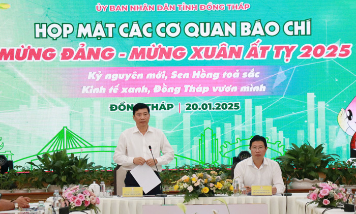 Năm 2025 là năm đặc biệt vì diễn ra nhiều sự kiện quan trọng như: Đại hội Đảng các cấp, Festival Hoa – Kiểng Sa Đéc năm 2025, Lễ hội Xoài v.v.; tiếp tục triển khai nhiều Đề án lớn như: 01 triệu héc ta lúa chất lượng cao, phục hồi và bảo tồn Sếu đầu đỏ, Chuyển đổi số v.v.. Do đó, Chủ tịch Ủy ban nhân dân tỉnh Đồng Tháp mong muốn các cơ quan báo chí tiếp tục đồng hành trong công tác thông tin, tuyên truyền với địa phương.