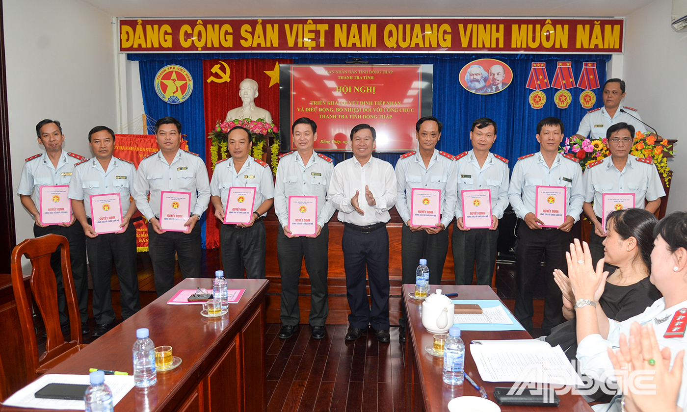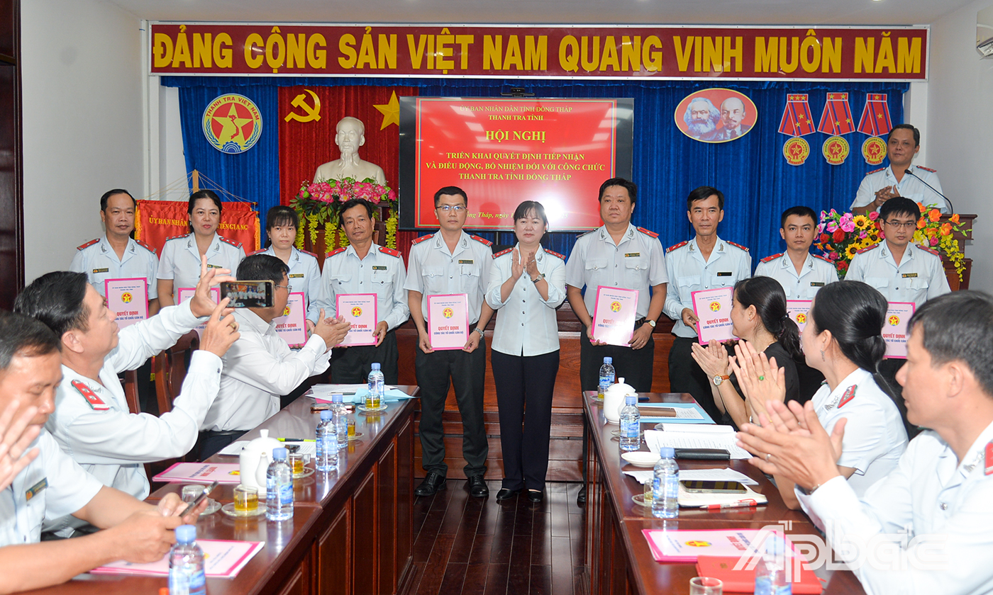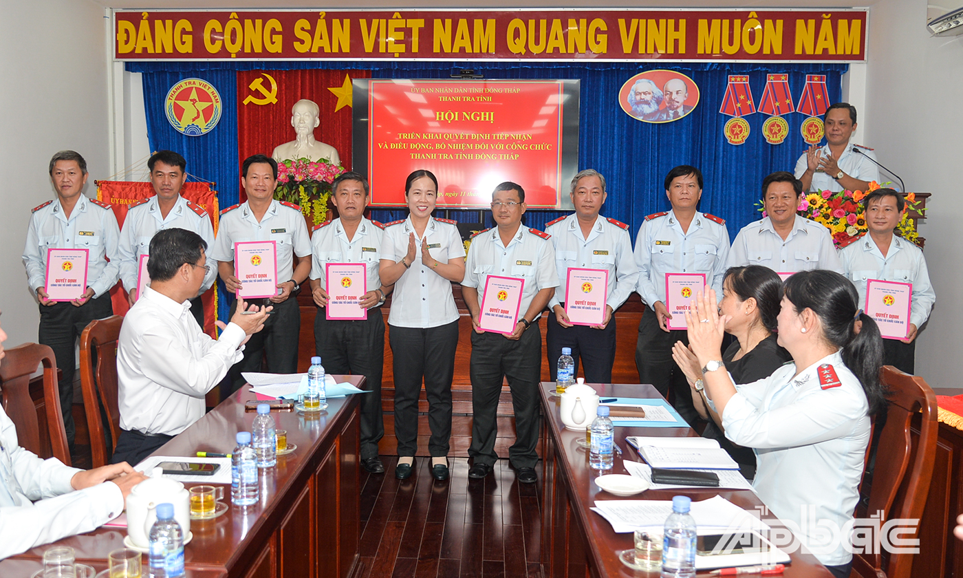 Theo đó, Thanh tra tỉnh Đồng Tháp triển khai quyết định UBND tỉnh về việc tiếp nhận, phân công nhiệm vụ đối với 173 công chức được UBND tỉnh điều động đến nhận công tác tại các tổ chức hành chính thuộc Thanh tra tỉnh và triển khai Quyết định bổ nhiệm cho 36 công chức lãnh đạo cấp phòng.