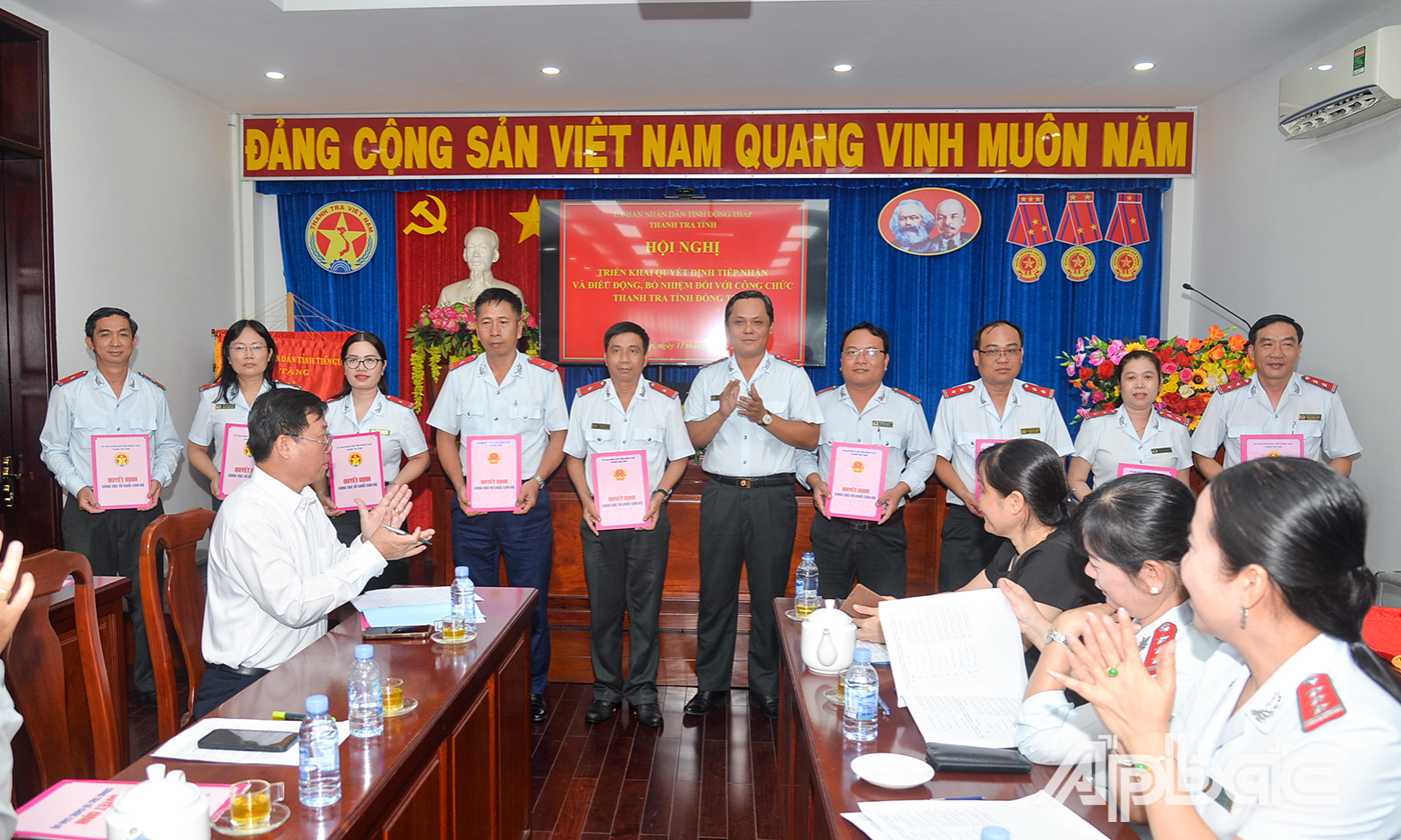 Đồng chí Nguyễn Chí Hải, Phó Chánh Thanh tra tỉnh Đồng Tháp trao Quyết định bổ nhiệm các phó trưởng phòng chuyên môn.